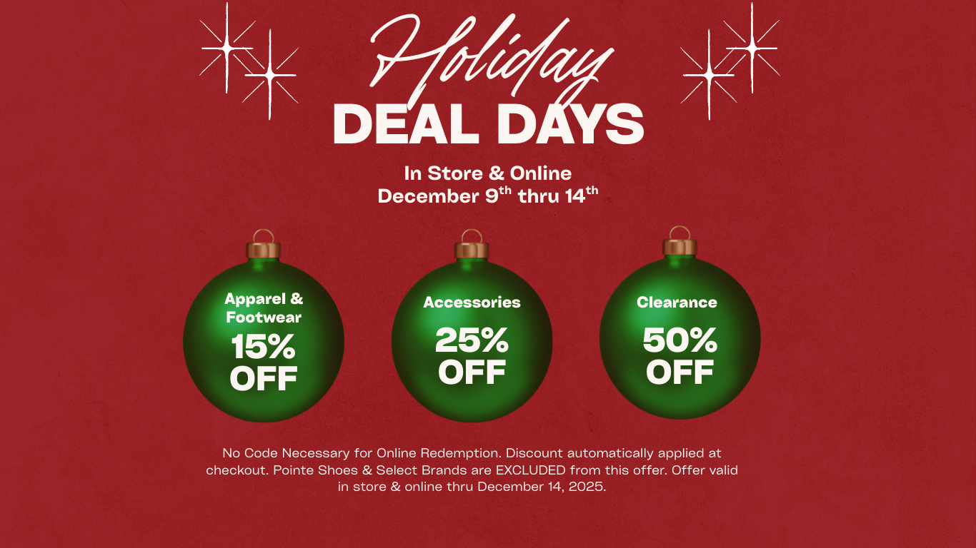 Now thru Cyber Monday, Buy $100 in Gift Cards and get a $15 gift card FREE!!! Give one, keep one — or double up the magic for your favorite dancer or teacher! Note: The Free $15 gift card will be shipped with your order, but does NOT show at checkout.