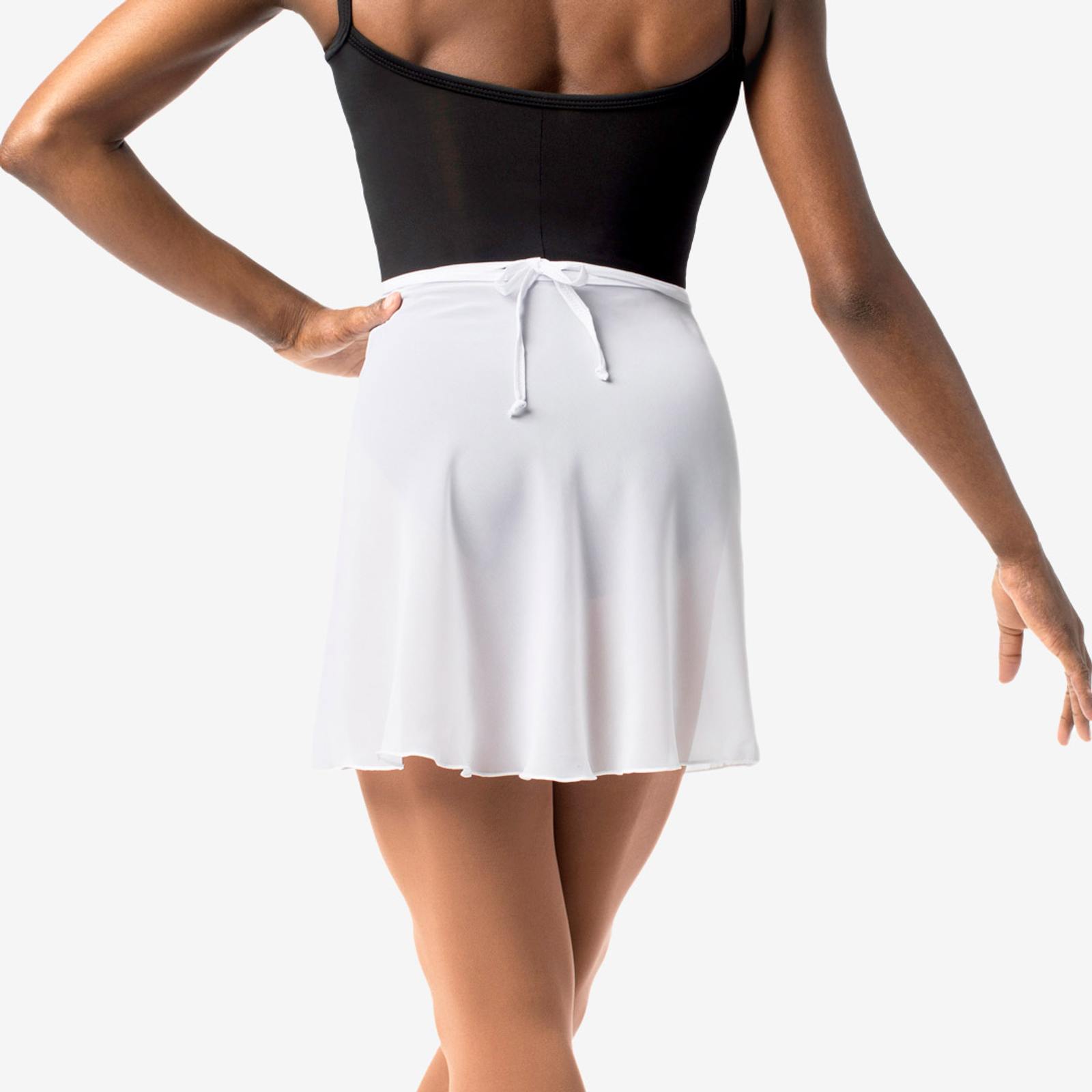 Adult semi sheer wrap skirt with a slightly longer hem in the back and ribbon ties.