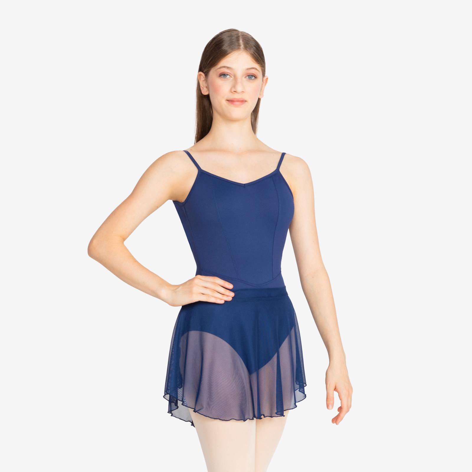 Adult mesh pull on skirt with slightly shorter front and longer back.